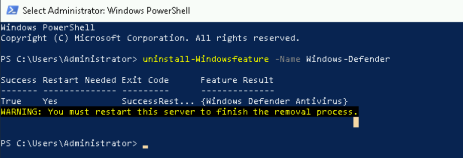 uninstall-Windowsfeature -Name Windows-Defender